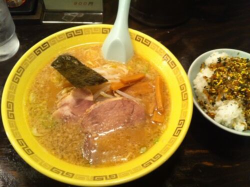 これが本日の晩御飯。 中華そば細めんとふりかけご飯。やっぱりここは、にんにく強めですが、安定してうまいですなぁ〜