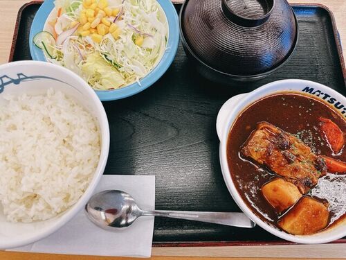 F氏から美味かったという話を聞いて、久しぶりの松屋へ。 ところが、いざ食券を買おうとおもったら取り扱いしてない… けっこう人気で売り切れ…ということなのかな?しょうがないので、にたような感じでビーフシチュー定食。 ご飯でビーフシチューというのは…