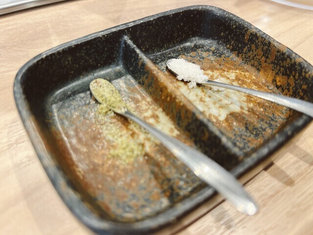 つけ麺には、藻塩と昆布塩のスプーンが一緒にくるので、これを麺に直接かけていただく。