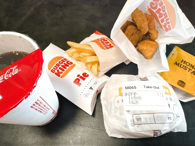 ダブルチーズバーガーにポテト。ナゲットとアップルパイ。そしてドリンク付きなので
